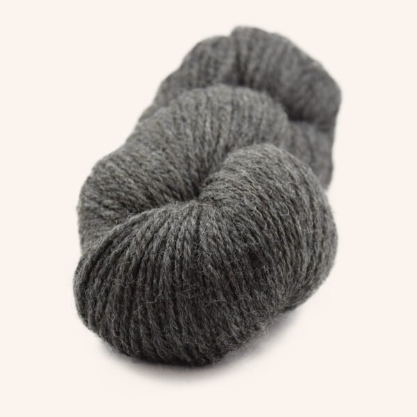 Mørkgrå superblødt bjergfårsuld. Nyvasket let lanolinholdigt og skyllet i eddike, når det lander hos dig. Løbelængde 200m/100gr