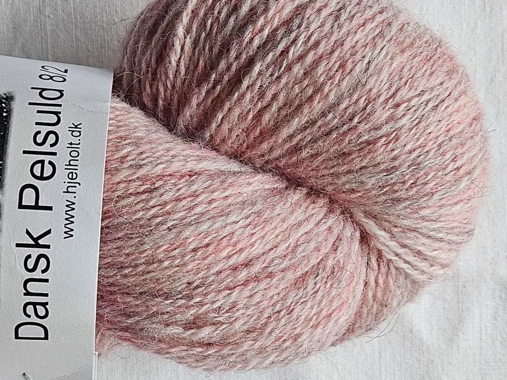 Dansk Pelsuld. Dejligt strikkegarn til trøjer og meget andet. Let meleret i den helt lyse ende.
