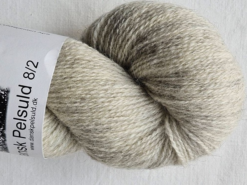 Dansk Pelsuld. Dejligt strikkegarn til trøjer og meget andet. Let meleret i den helt lyse ende.Farven er varm.
